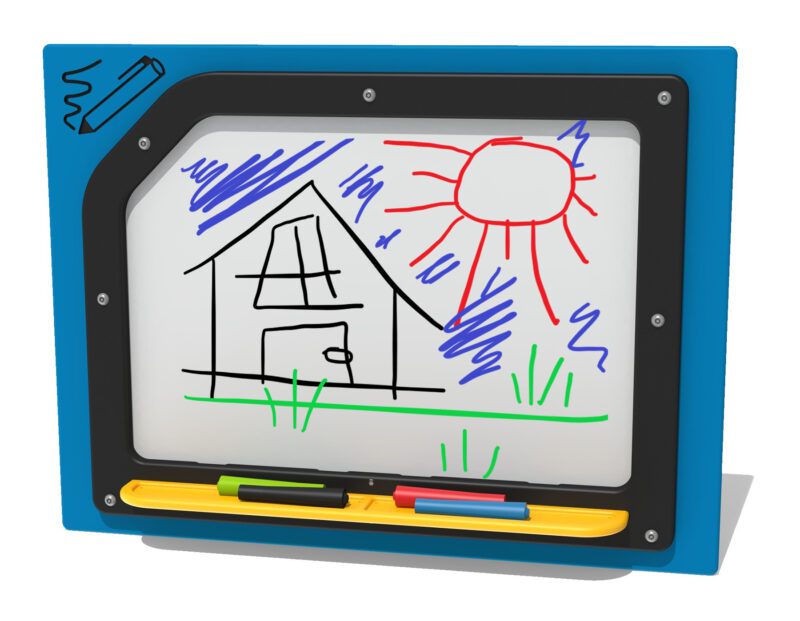 An exterior dry wipe play panel, available in two sizes.