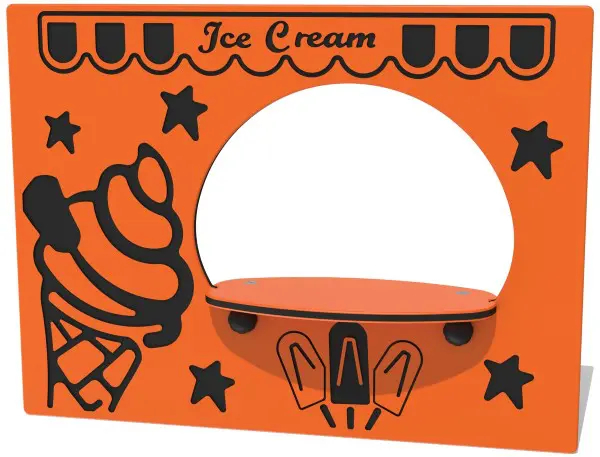An ice cream shop HDPE play panel complete with a window opening, and countertop, perfect for imagination and role play.