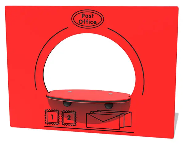 A post office HDPE play panel complete with a window opening, and countertop, perfect for imagination and role play.
