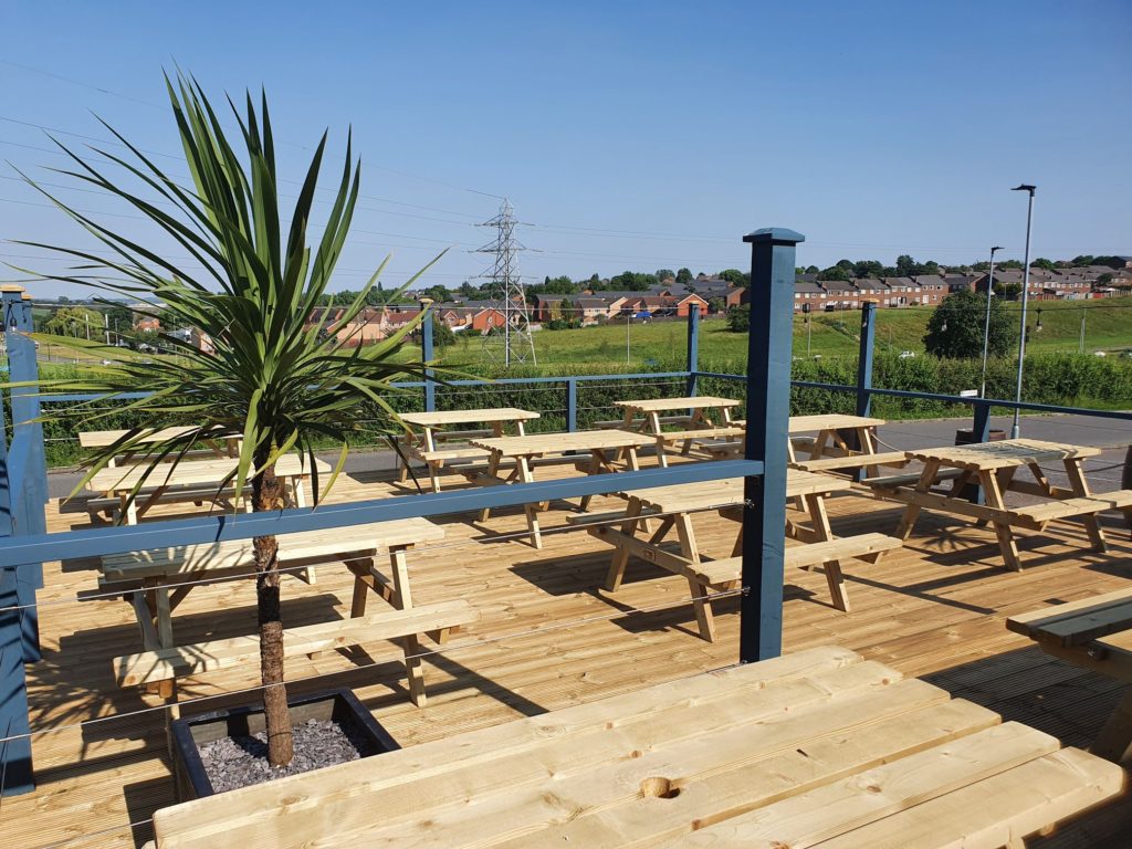 Photo of inside BattleAxe, axe throwing in Sheffield, showing Greenfield Leisure artificial grass installation